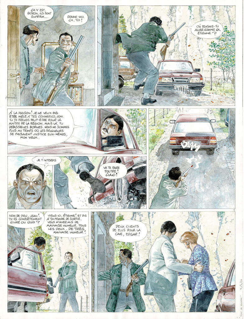 Lune de Guerre, planche originale à l’aquarelle pour cet album paru en 2000 chez Dupuis. Dimensions : 43 cm x 32,5 cm.