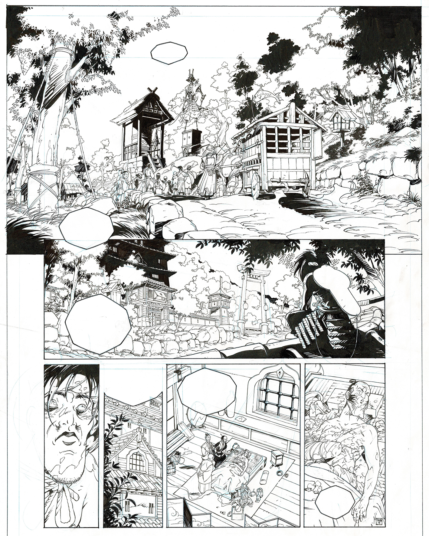 Okko, Le Cycle de l’air II, planche originale à l’encre de chine. Dimensions : 59 cm x 42 cm.