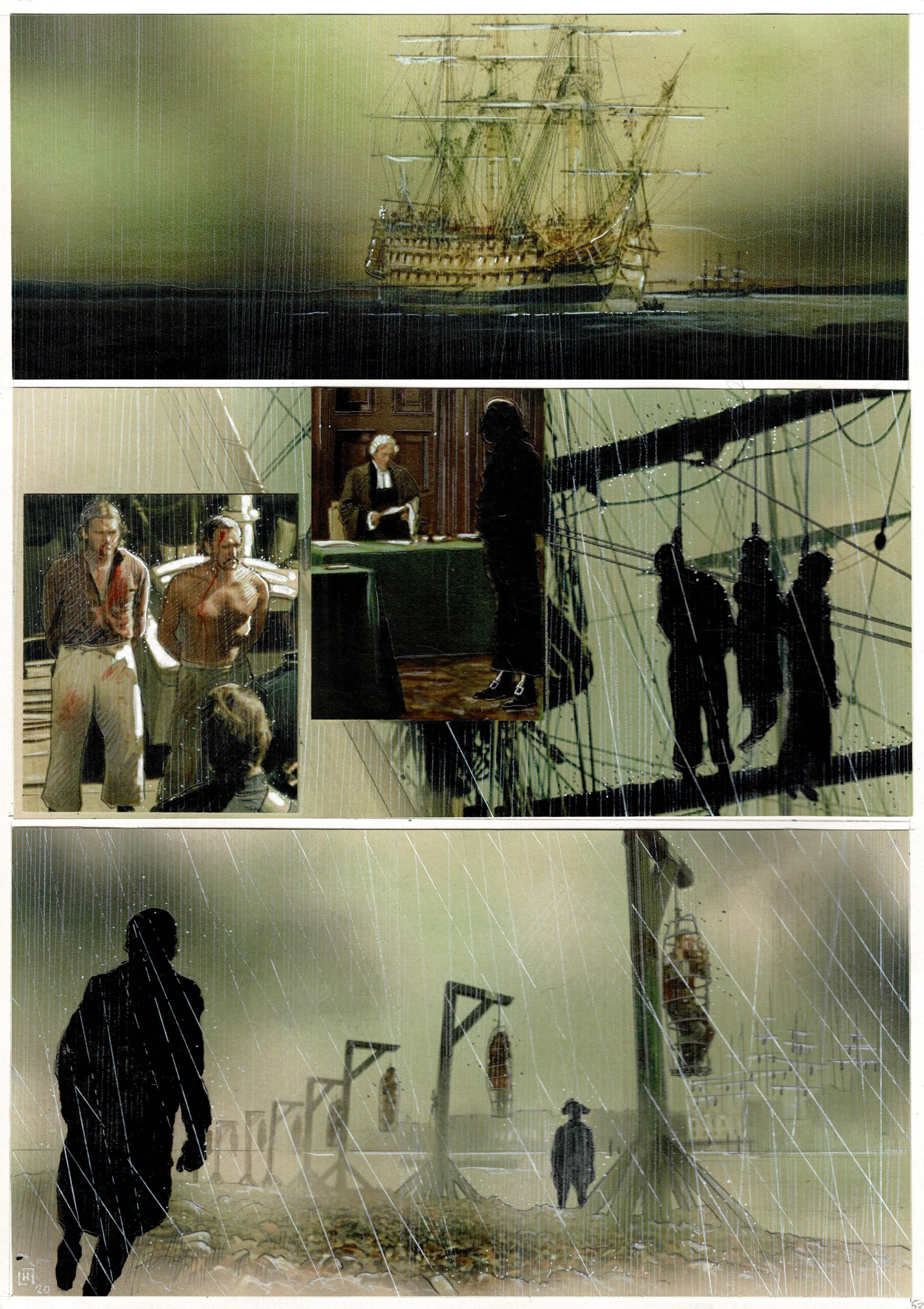 Capitaine Bligh, planche originale en couleurs directes. Dimensions : 42 cm x 29,5 cm.