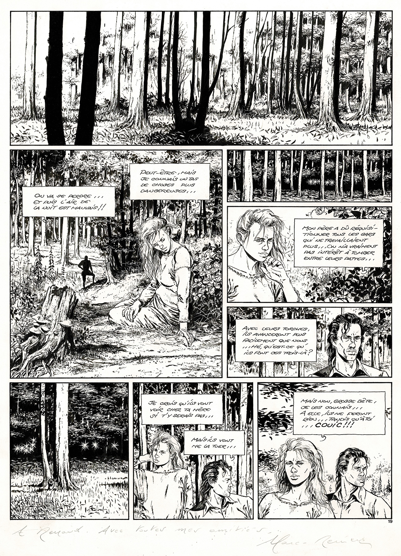 La Traque, planche originale à l’encre de chine. Dimensions : 47,5 cm x 35 cm.