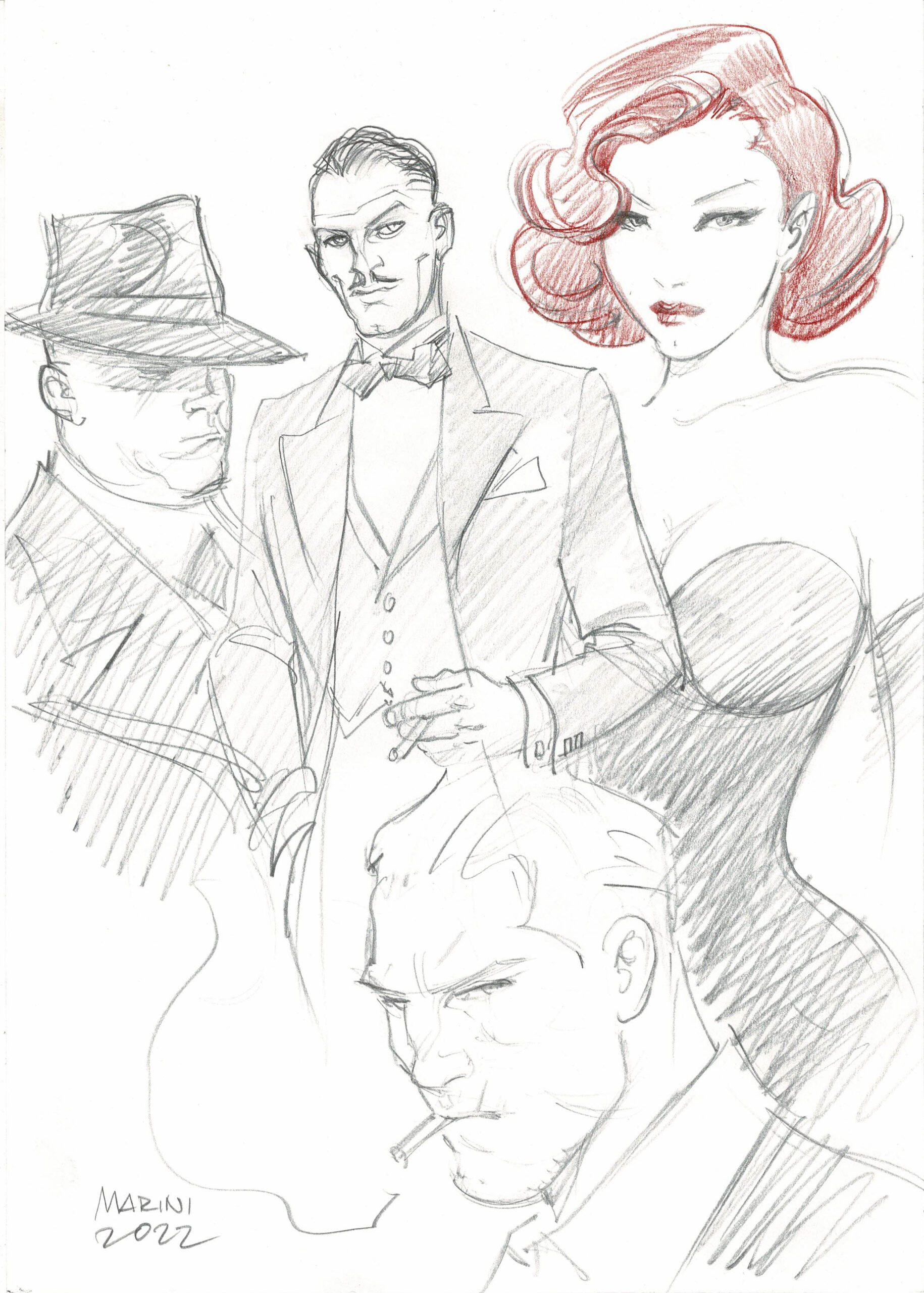 Noir Burlesque, dessin original à la mine de plomb. Dimensions : 29,5 cm x 21 cm.