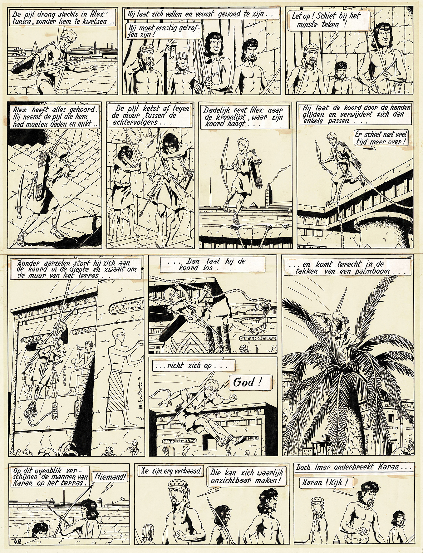 Alix, Le Sphinx d’Or, planche originale à l’encre de chine pour cet album paru en 1956 chez Dargaud. Dimensions : 53 cm x 41 cm.