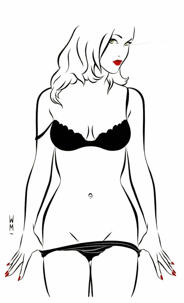 Pin-Up, dessin original à l’encre de chine et aux encres de couleurs. Dimensions : 24 cm x 18 cm.