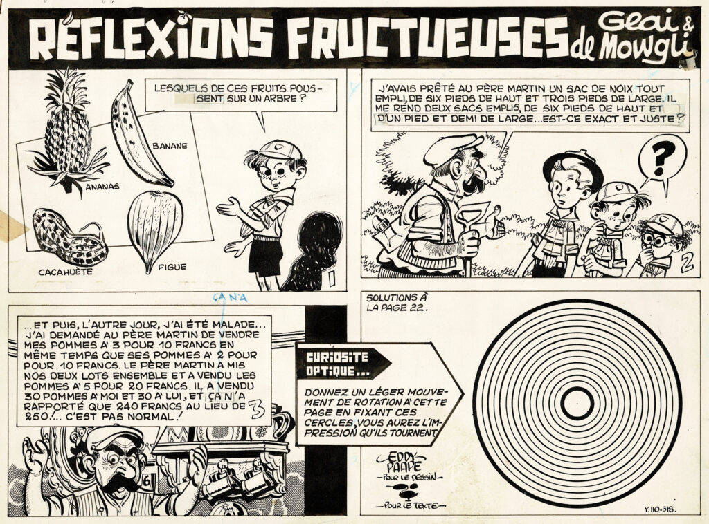 Planche originale à l’encre de chine parue dans le journal Spirou. Dimensions : 36,5 cm x 27 cm.