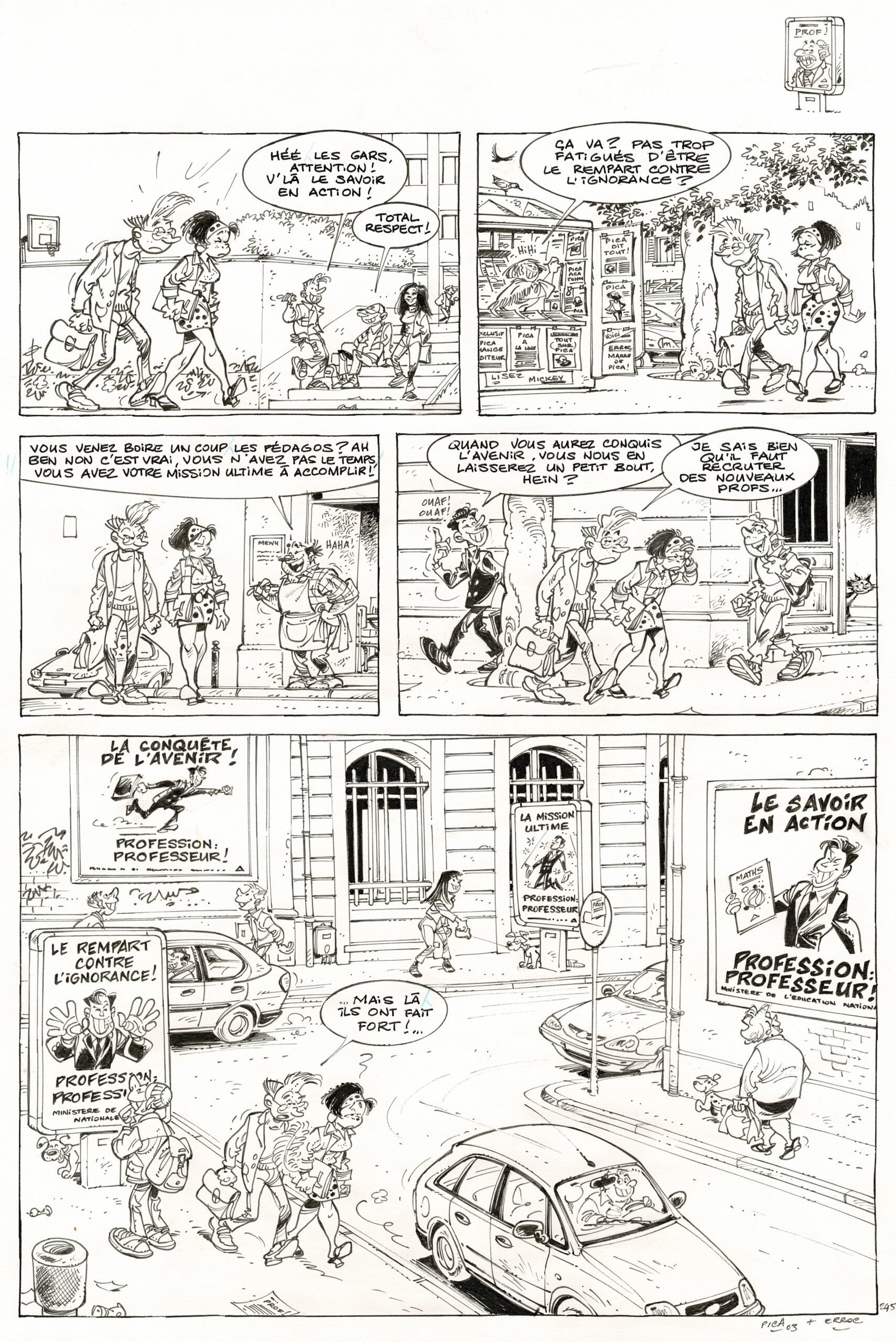 Les Profs, planche originale à l’encre de chine. Dimensions : 43 cm x 30 cm.