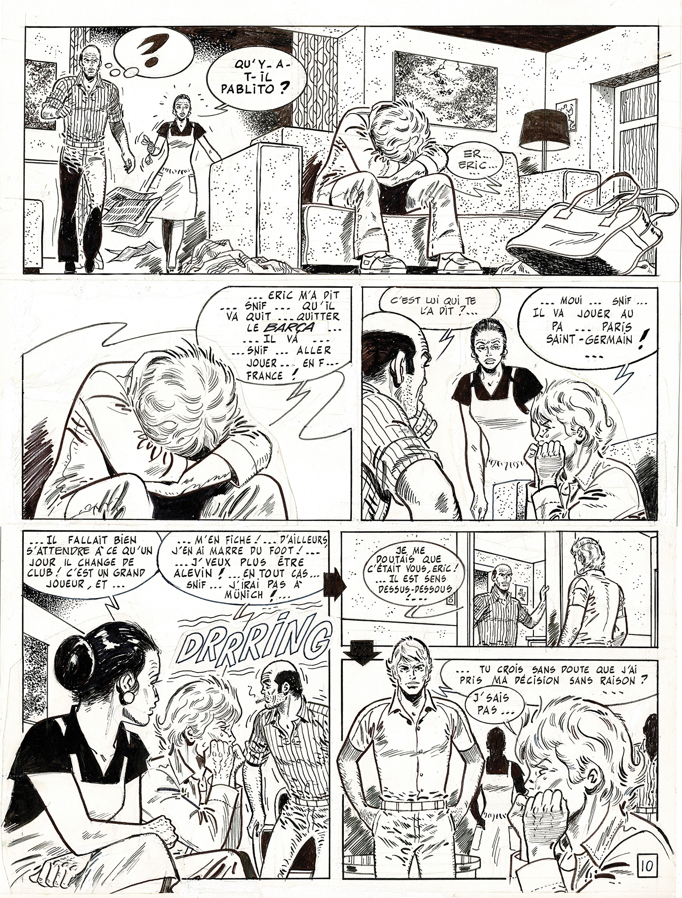 Eric Castel, Le grande décision, planche originale à l’encre de chine. Dimensions : 44,5 cm x 33,5 cm.