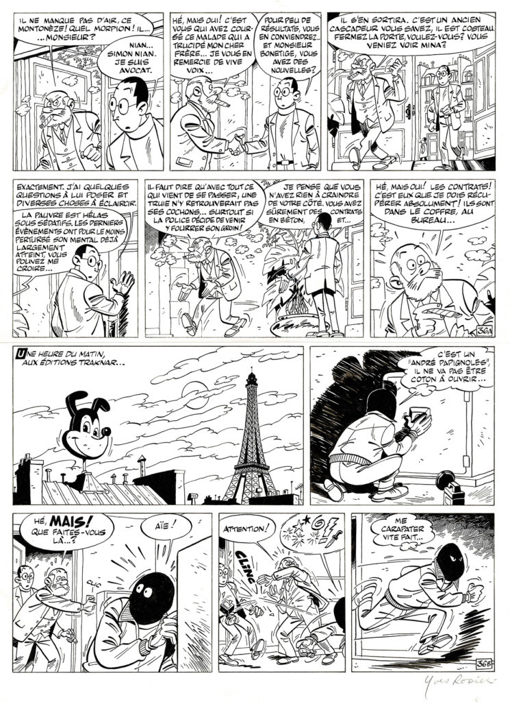 Simon Nian, Décime-moi un maton, planche originale à l’encre de chine. Dimensions : 47,5 cm x 32,5 cm.