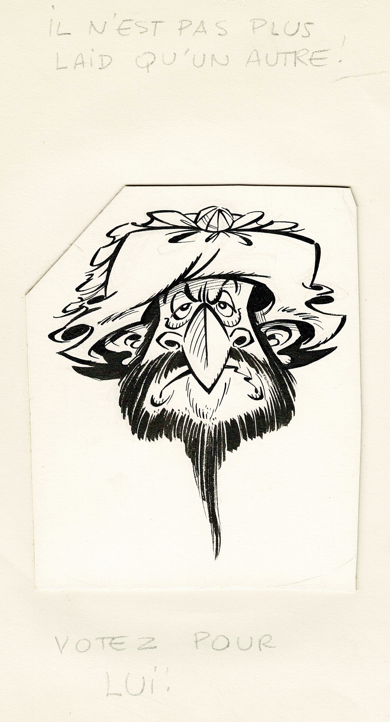 Iznogoud, dessin original à l’encre de chine publié dans le journal pilote. Dimensions : 11,5 cm x 9,5 cm.