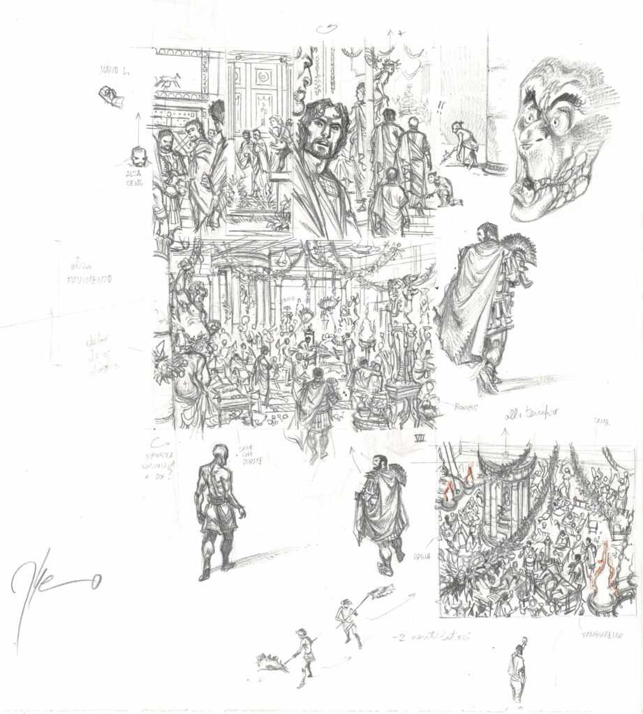 Murena, Mort d’un sage, planche originale à la mine de plomb parue dans le tirage de luxe. Dimensions : 29,5 cm x 21 cm.