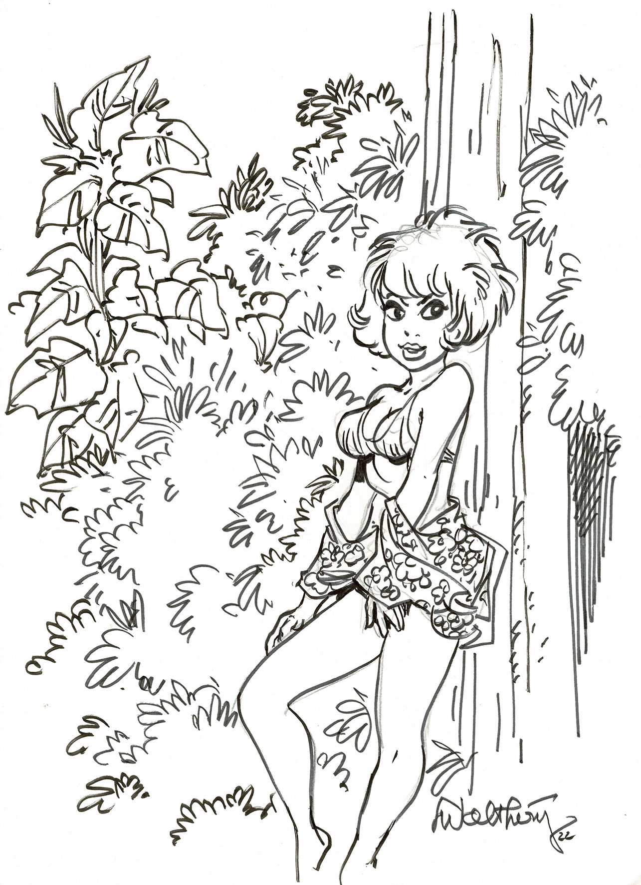 Natacha, dessin original à l’encre de chine, cachet de Walthéry au verso. Dimensions : 42 cm x 29,5 cm.
