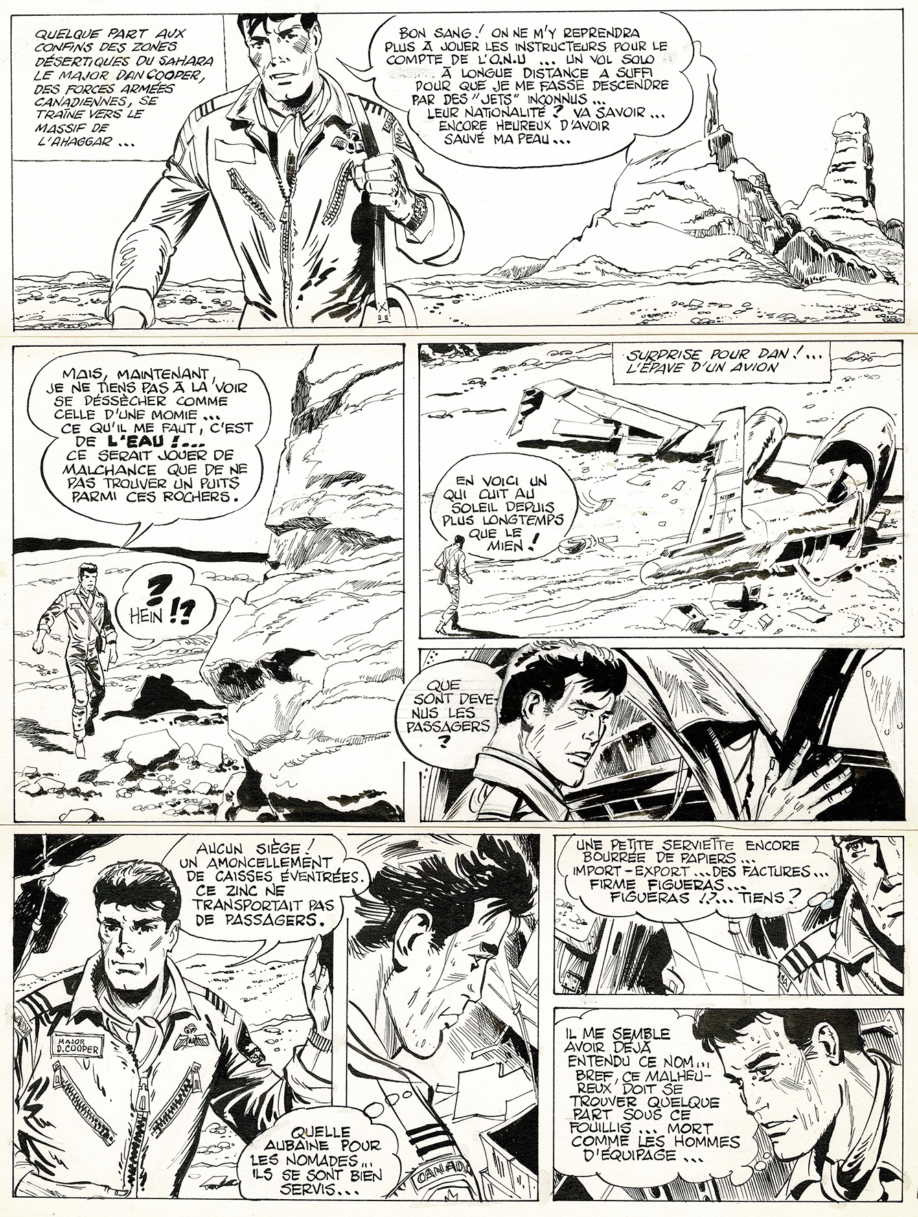 Dan Cooper, Opération Jupiter, planche originale à l’encre de chine. Dimensions : 39,5 cm x 30 cm.