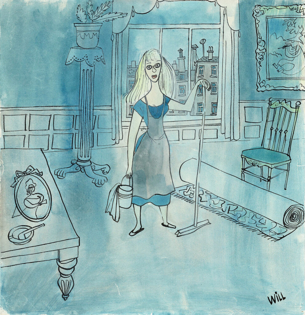 Au travail à Paris, dessin original à l’encre de chine et à l’aquarelle. Dimensions : 33 cm x 32 cm.