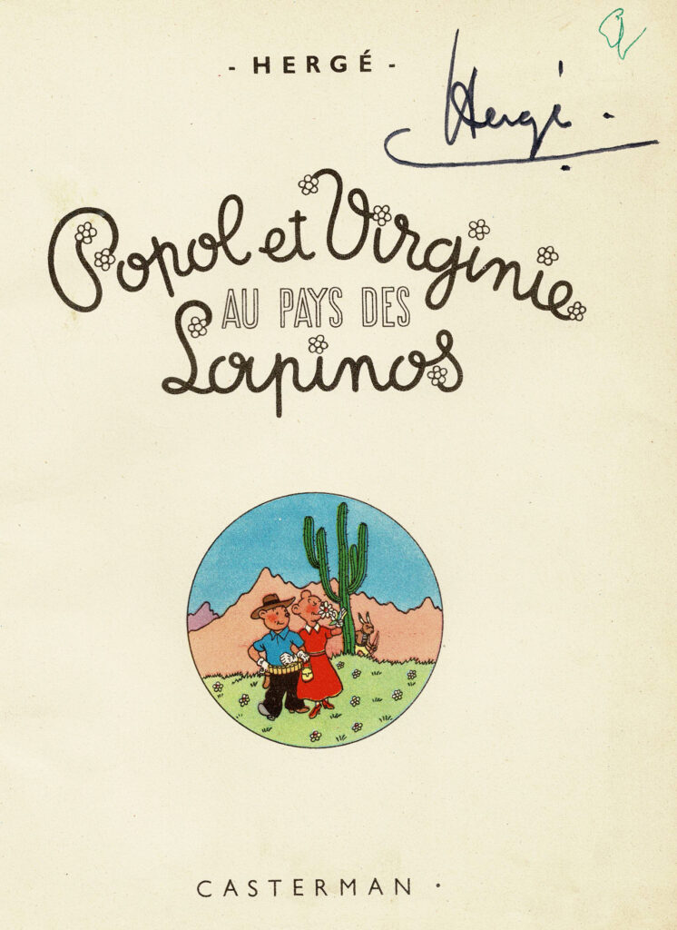 Popol et Virginie au Pays des Lapinos, édition originale de 1952, agrémenté d’une signature d’Hergé. Bon état.