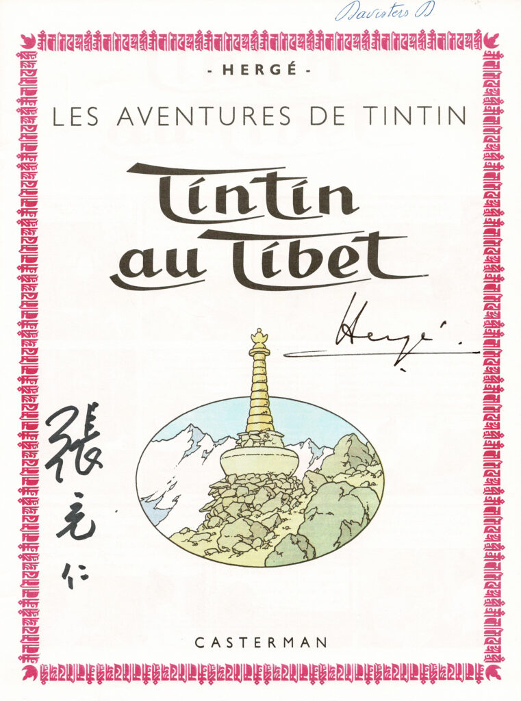 Tintin au Tibet (C3 Ter), agrémenté d’une signature d’Hergé et d’une signature de Tchang. Très très bon état.