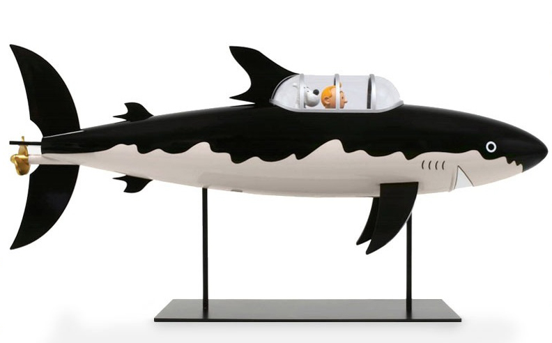 MOULINSART : Tintin, Le sous-marin requin 77 cm (40029), 2021, 77 cm, n°, BC. Cockpit abîmé, à restaurer.