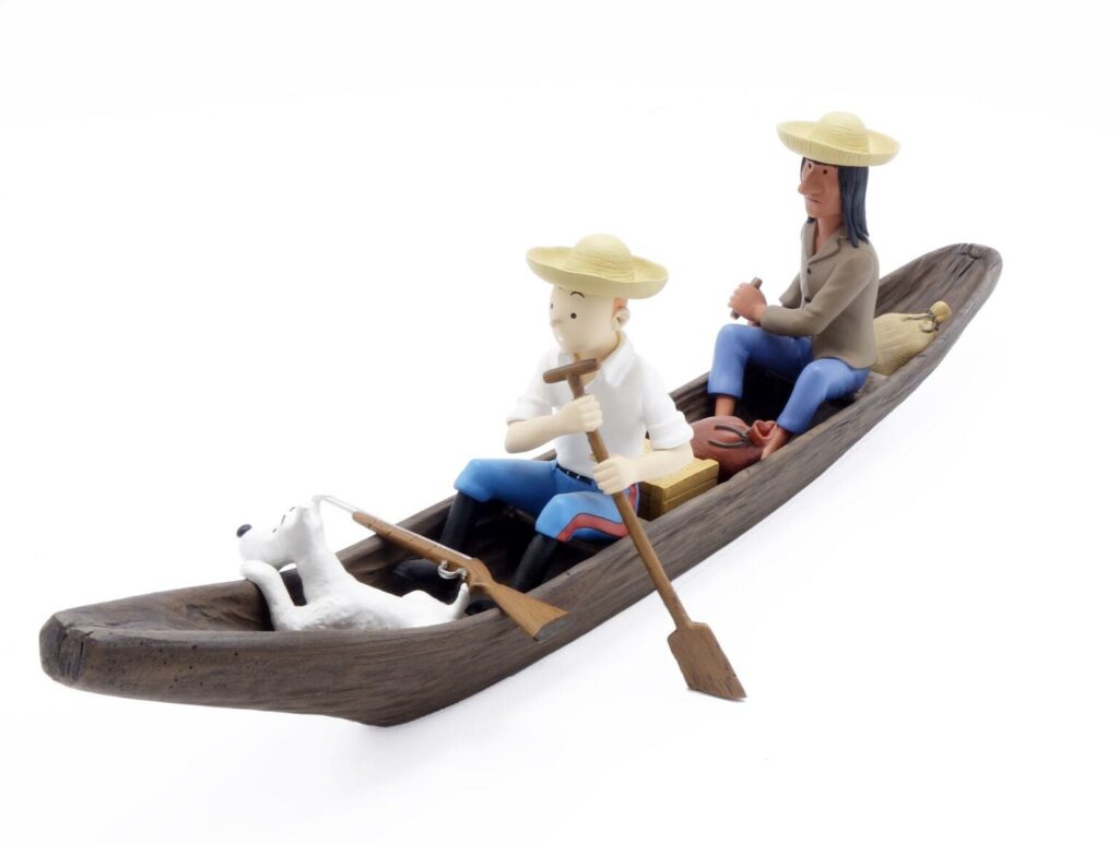 MOULINSART : Tintin, 46956, la pirogue, L’Oreille cassée, 2004, n°, 45 cm, BC.