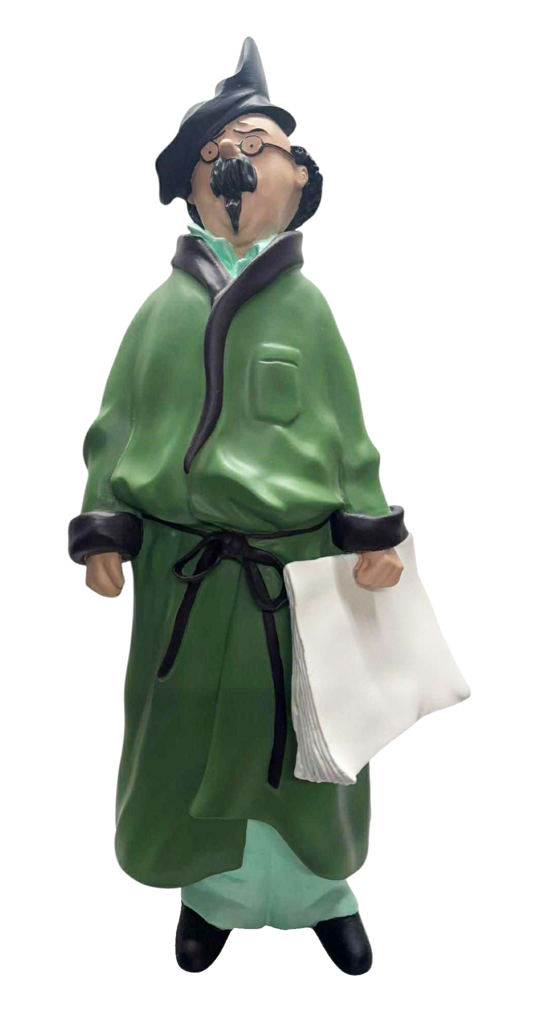 LEBLON-DELIENNE : Tintin, Tournesol robe de chambre, Tintin chez les Picaros, 2ème version avec les yeux, lunettes creuses, 1987, +/- 200 ex., 40 cm, signé Marie Leblon sous la robe de chambre. RARE.