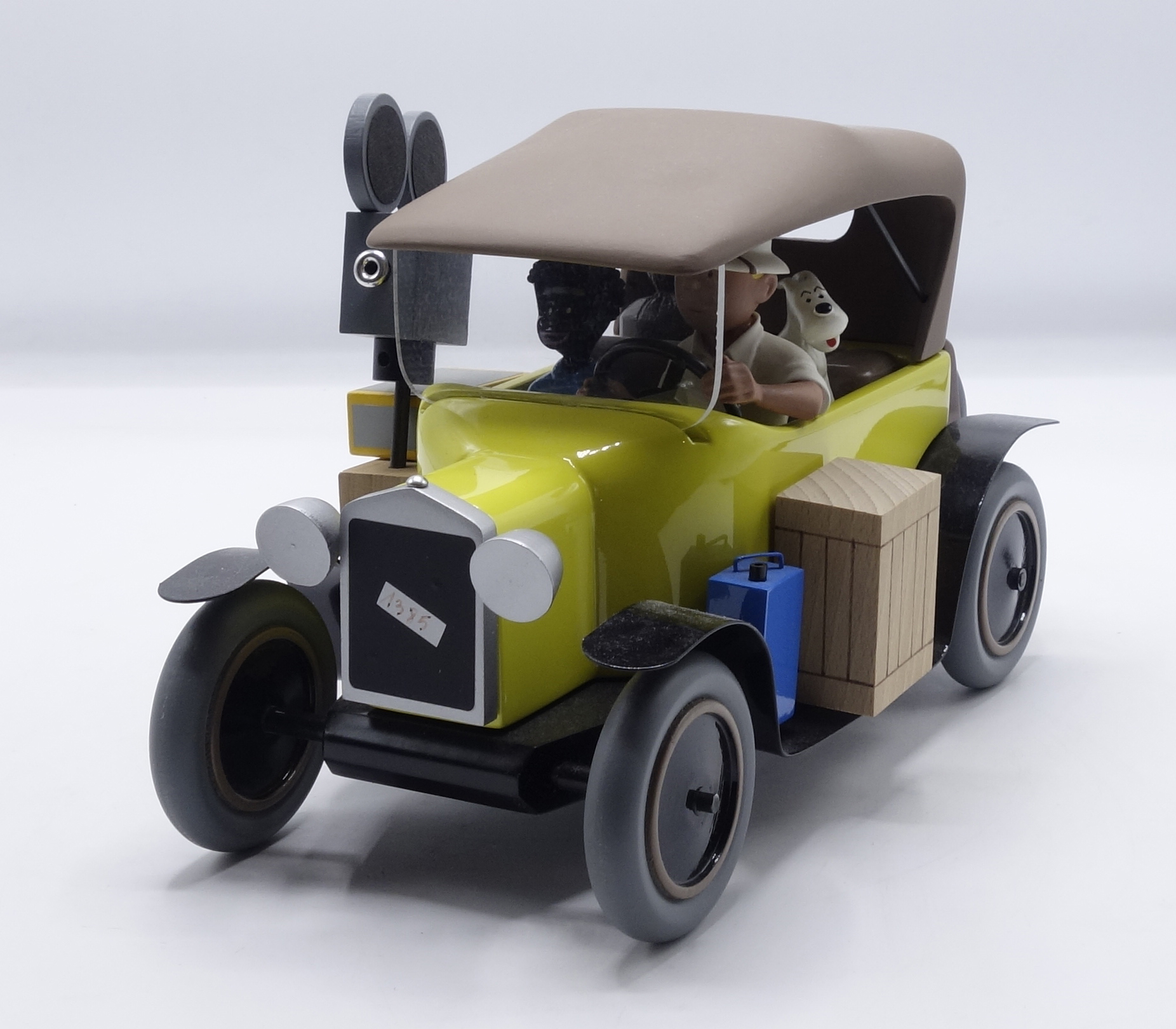 AROUTCHEFF : Tintin, la Ford T Congo, version customisée de couleur jaune, exclusivité pour un petit groupe de collectionneurs, signée par Aroutcheff, 38 cm, C pastille. Rare.