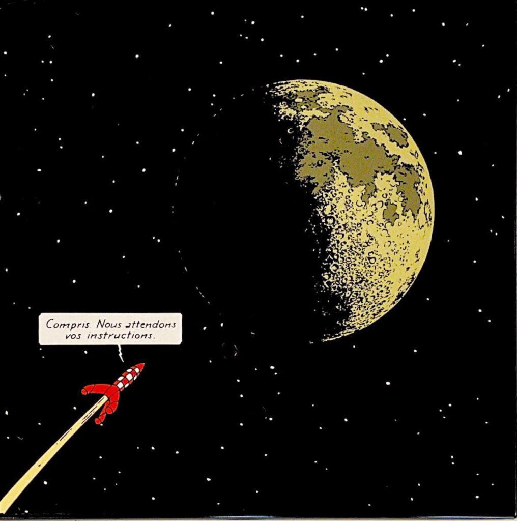 Tintin, plaque émaillée « Série lune » : La fusée en route vers la lune, l’Emaillerie belge, 1985. Dimensions : 35 cm x 35 cm.