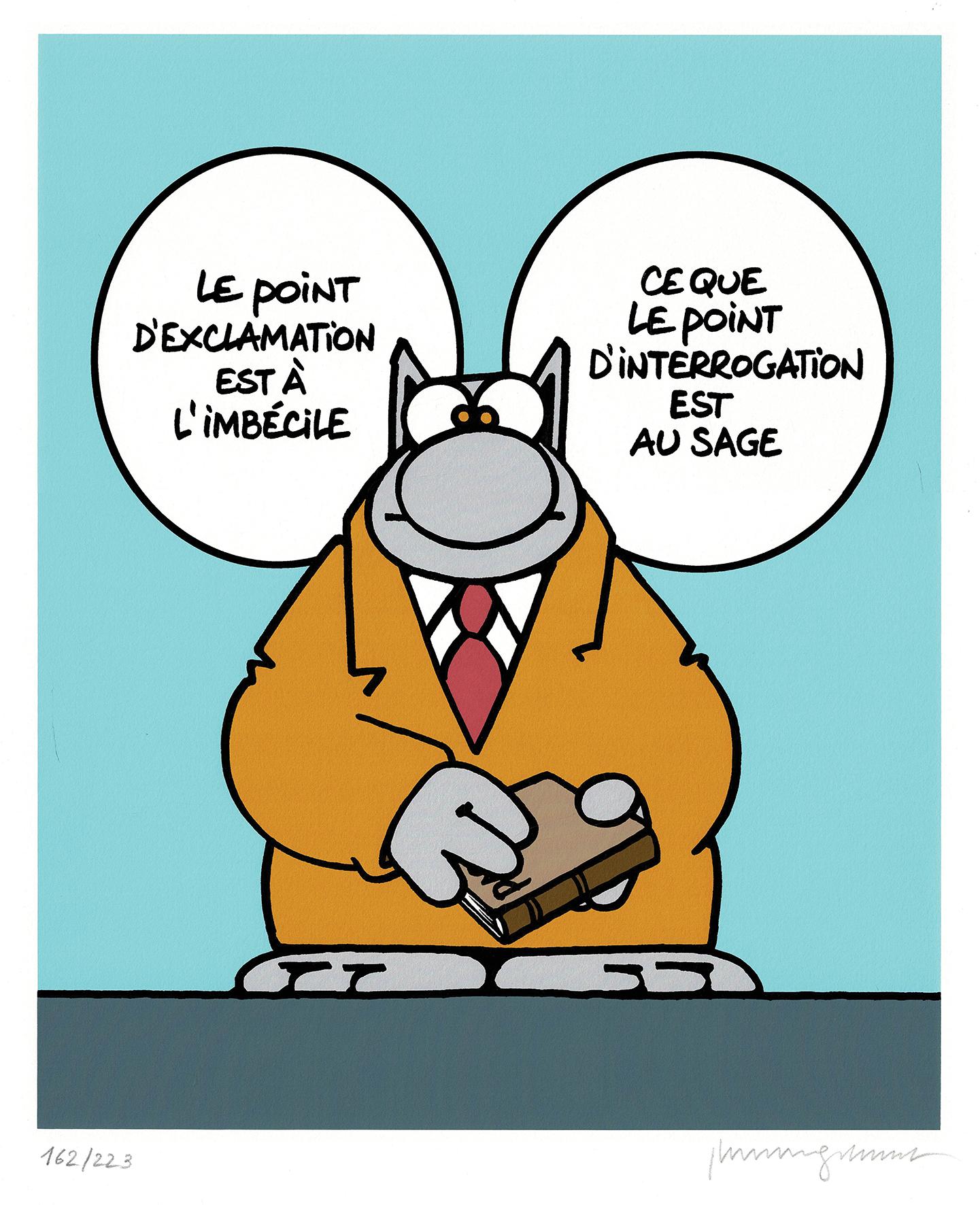 Le chat et le point d’exclamation, sérigraphie limitée à 223 exemplaires, numérotée et signée. Dimensions : 50 cm x 40 cm.