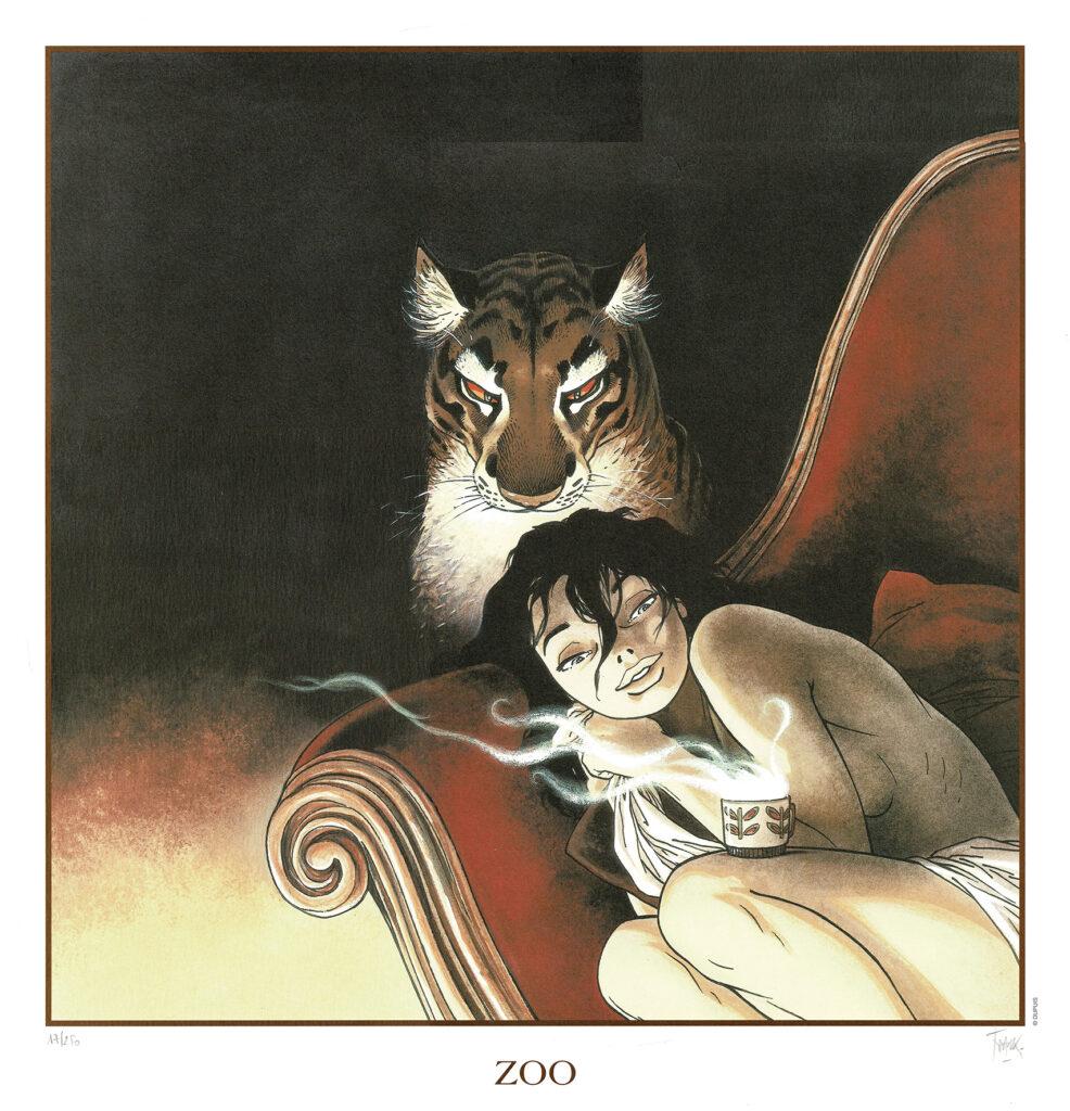 Zoo, ensemble de 2 lithographies numérotées et signées. Dimensions : 60 cm x 40 cm et 50 cm x 50 cm.