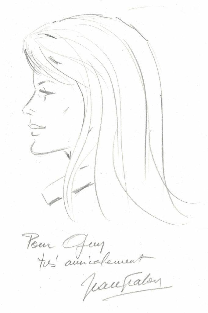 Michel Vaillant, Julie Wood, dédicace à la mine de plomb sur feuille libre. Dimensions : 29,5 cm x 21 cm.