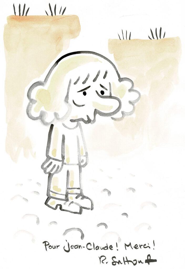 Dédicace au feutre fin et à l’aquarelle sur feuille libre. Dimensions : 29,5 cm x 21 cm.