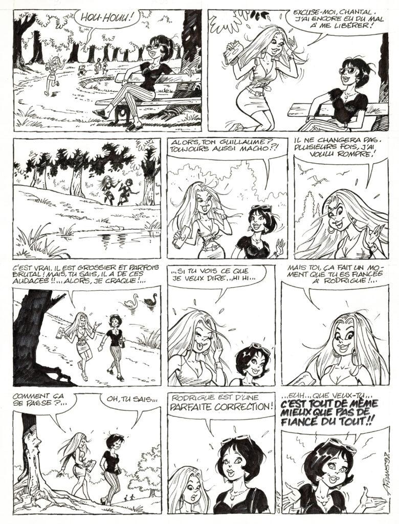 Gags en folie, planche originale à l’encre de chine. Dimensions : 42 cm x 31 cm.