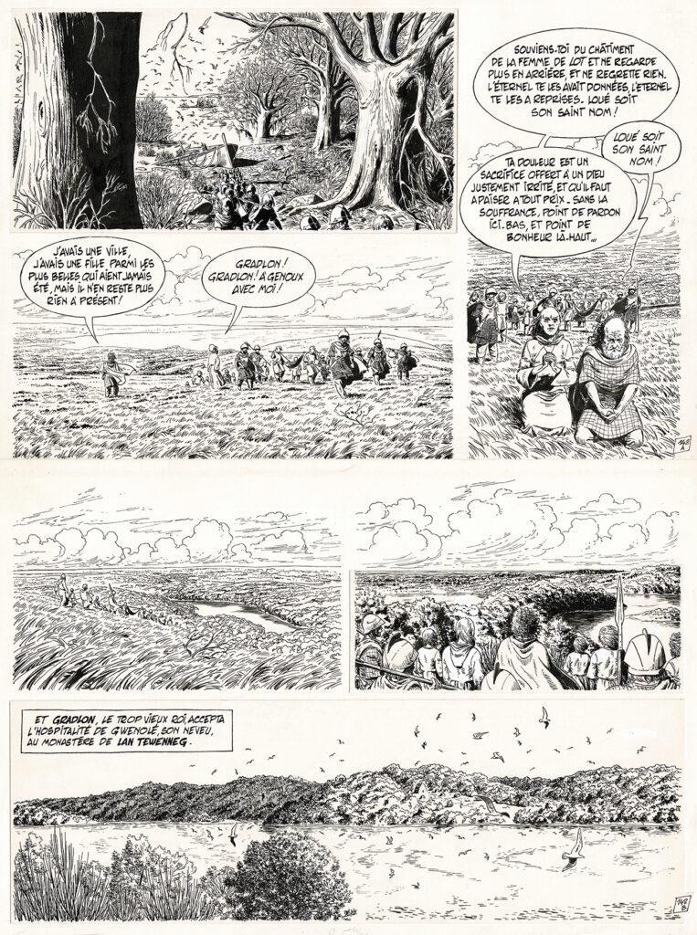 Bran Ruz, planche originale à l’encre de chine pour cet album paru en 1981 chez Casterman. Dimensions : 56 cm x 42,5 cm.