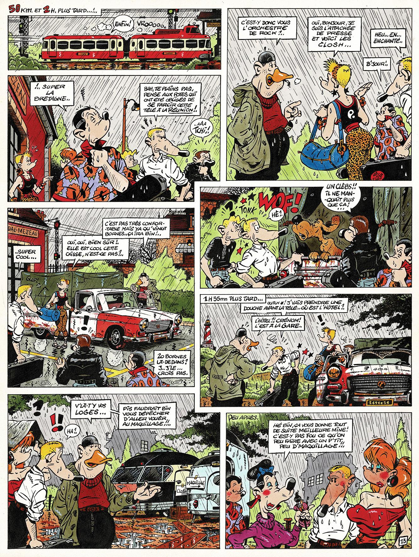 Les Closh au flop 50, planche originale en couleurs directes. Dimensions : 43 cm x 32,5 cm.