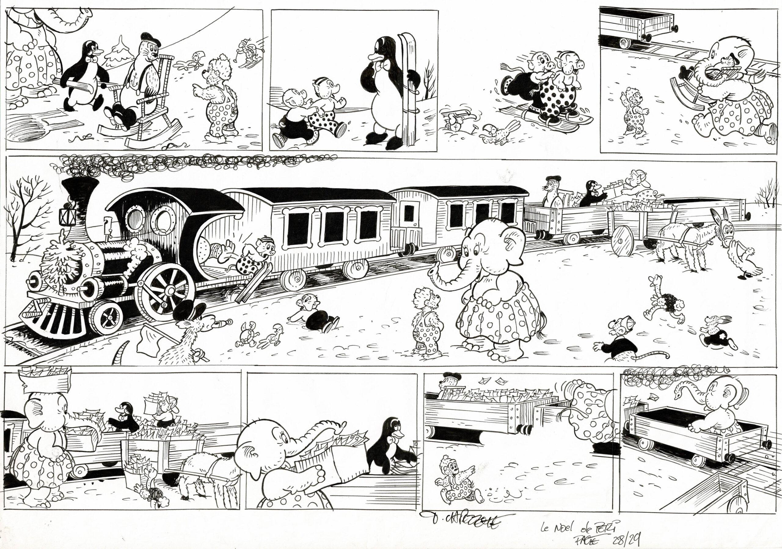 Le Noël de Petzi, planche originale à l’encre de chine. Dimensions : 42 cm x 29,5 cm.