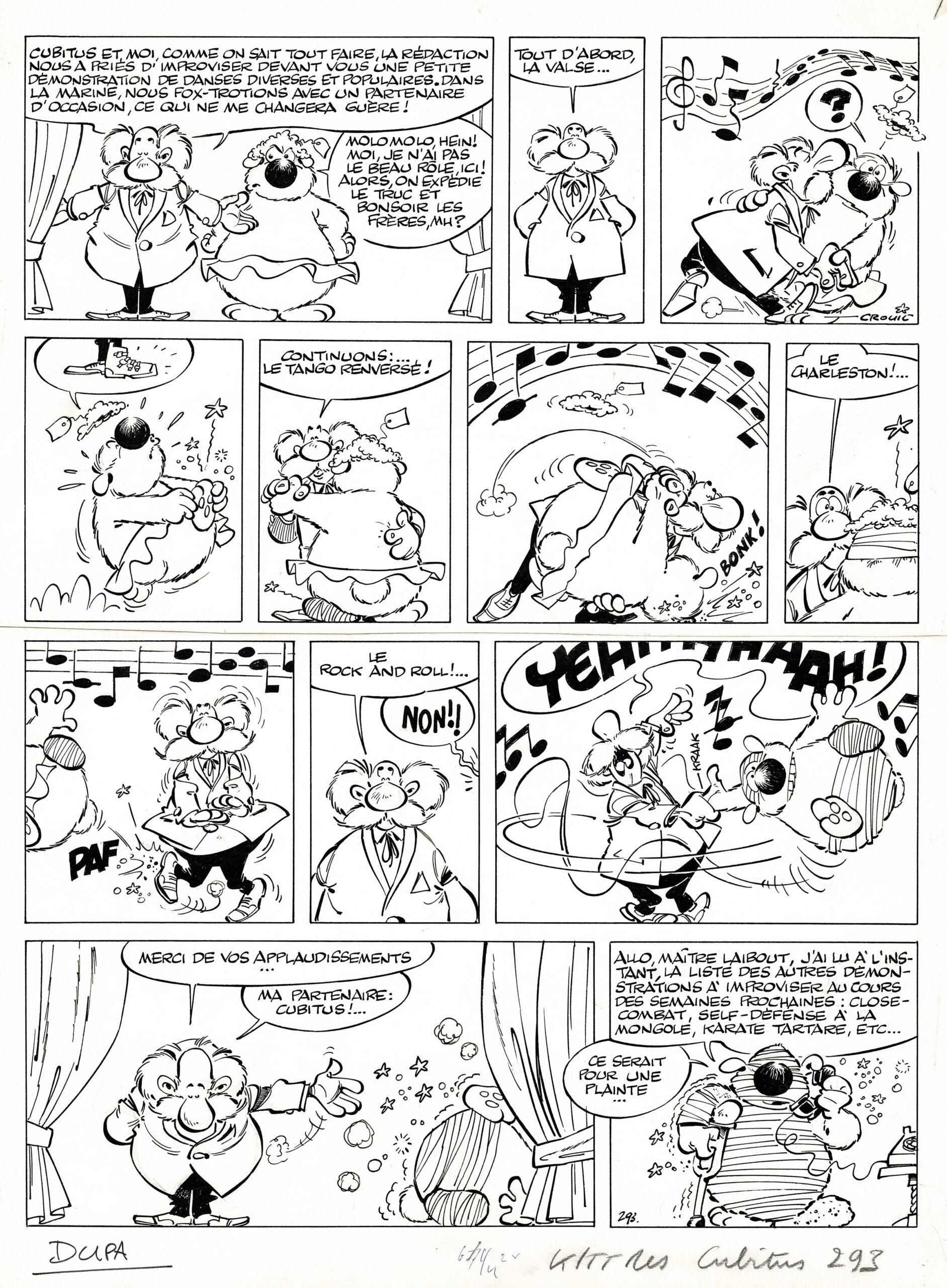 Cubitus, planche originale à l’encre de chine. Dimensions : 39,5 cm x 30,5 cm.
