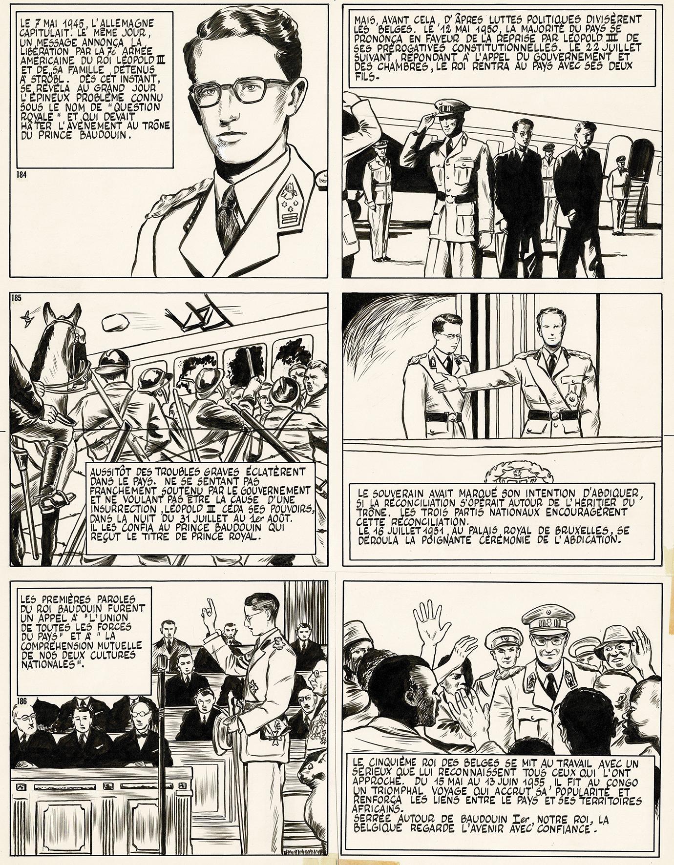 L’aventure des belges, planche originale à l’encre de chine. Dimensions : 46 cm x 36,5 cm.