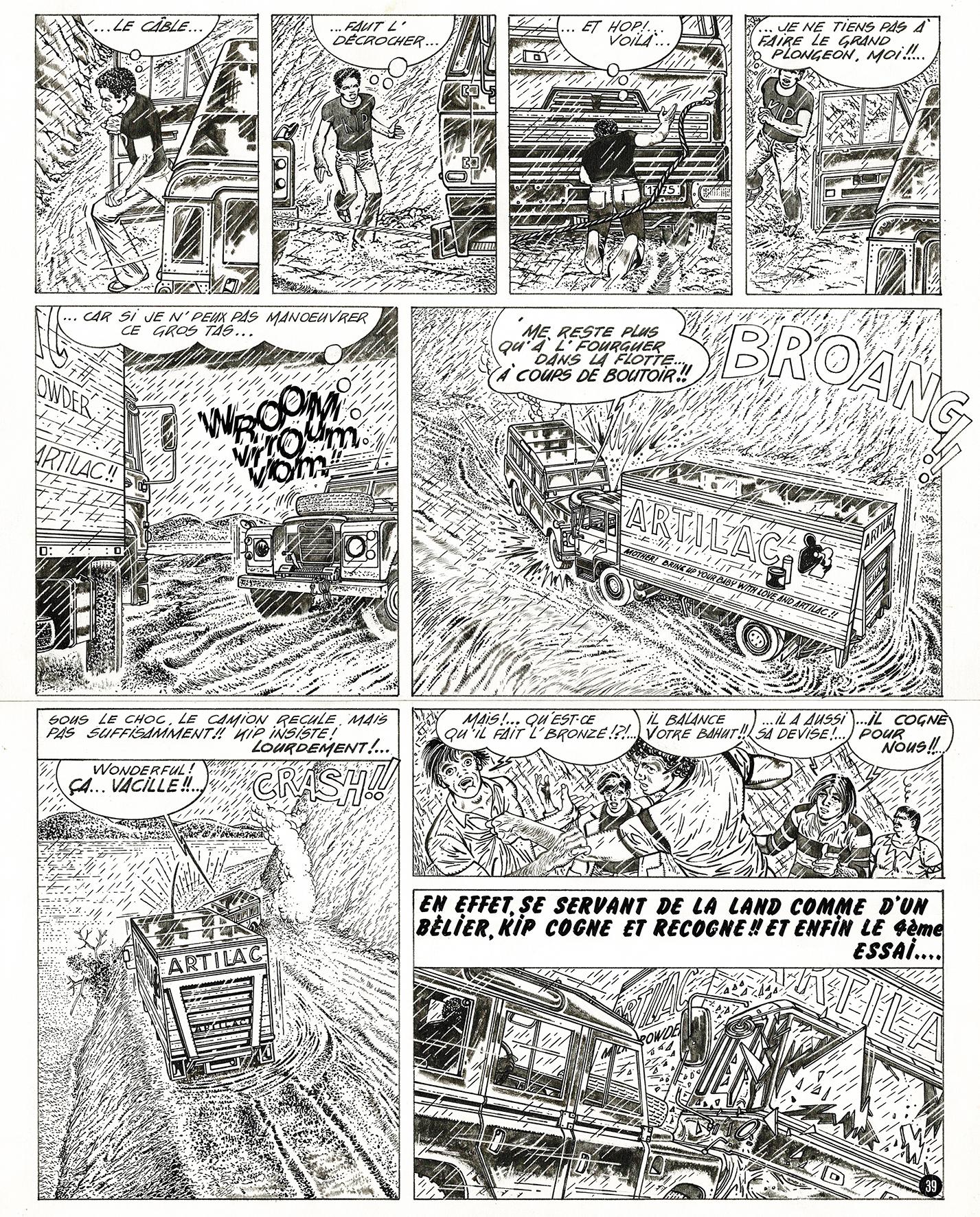 Les Baroudeurs, Harambee !, planche originale à l’encre de chine. Dimensions : 46,5 cm x 36,5 cm.