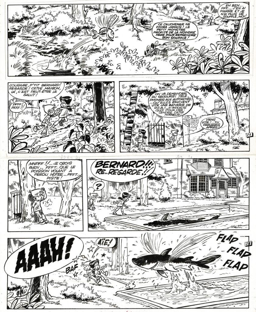 Sophie, Qui fait peur à Zoé ?, planche originale à l’encre de chine pour cet album paru en 1970 chez Dupuis. Dimensions : 40,5 cm x 33,5 cm.