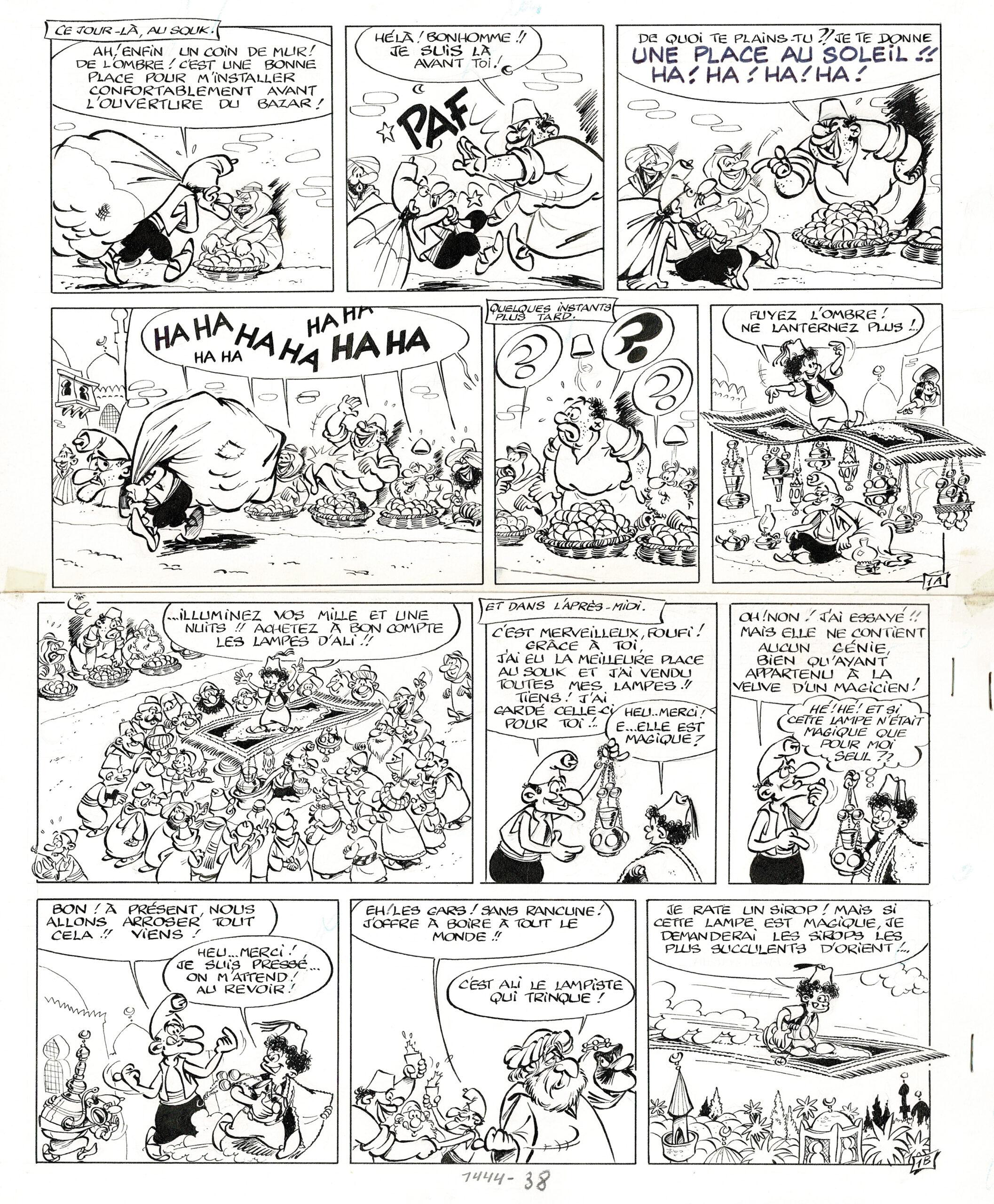 Foufi à la belle étoile, planche originale à l’encre de chine. Dimensions : 43 cm x 36,5 cm.