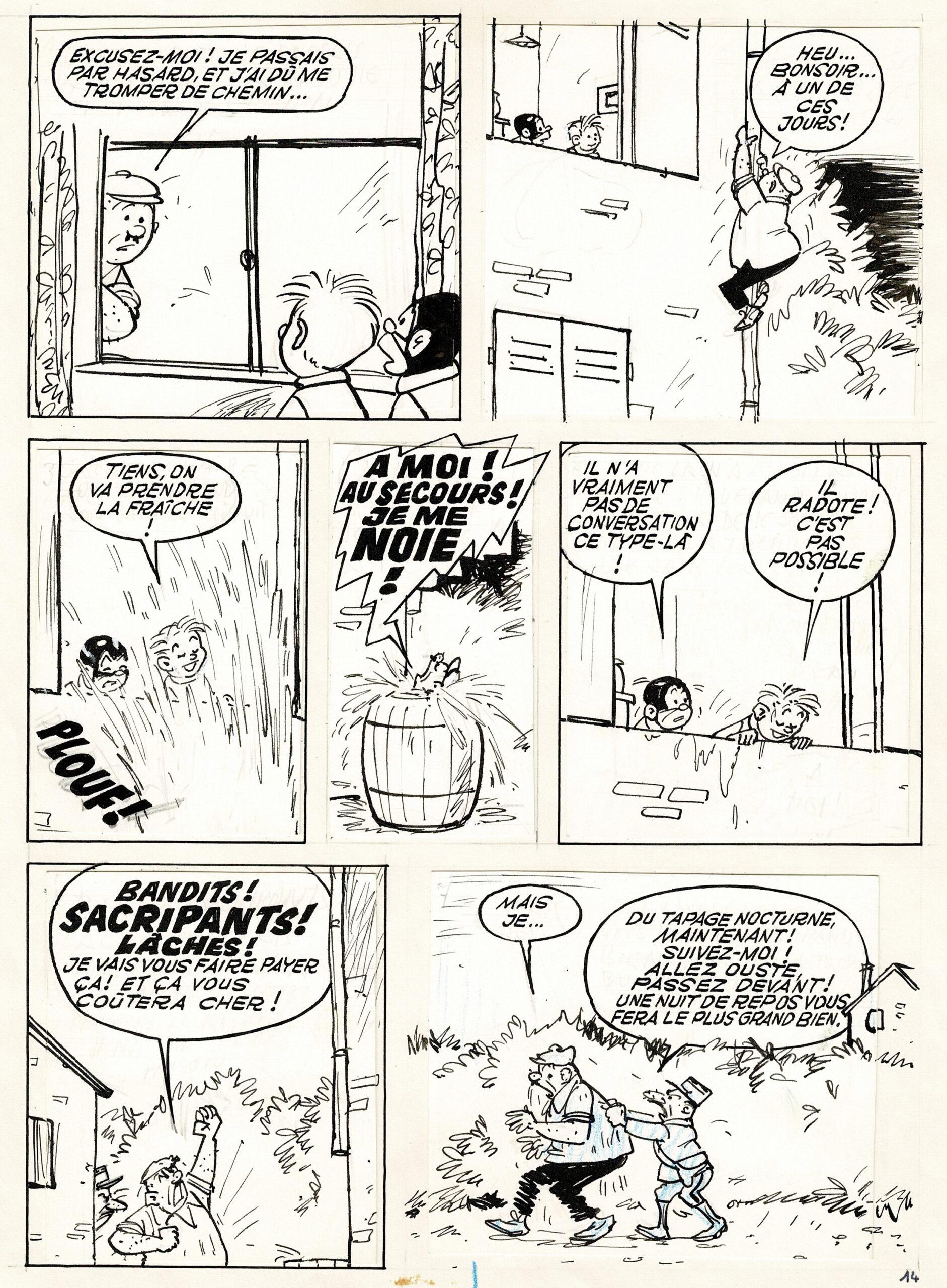 Bibi Fricotin, planche originale à l’encre de chine. Dimensions : 34 cm x 28 cm.