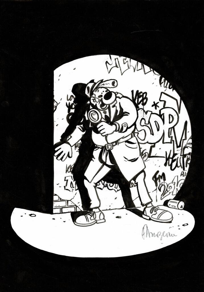 Dessin original à l’encre de chine réalisé pour une affiche. Dimensions : 29,5 cm x 21 cm.