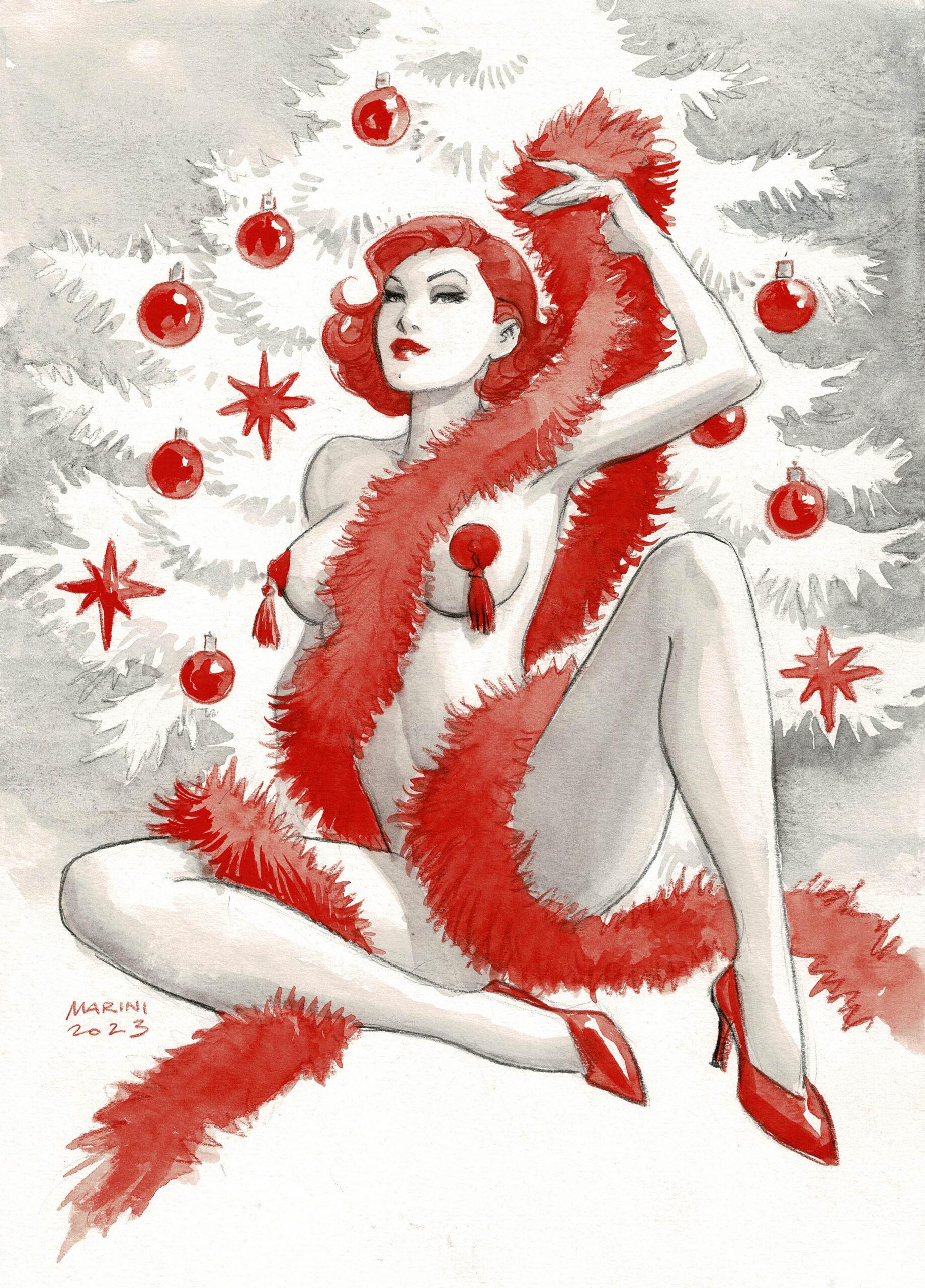 Noir Burlesque, dessin original au lavis et à l’aquarelle. Au verso joli crayonné original. Dimensions : 29,5 cm x 21 cm.