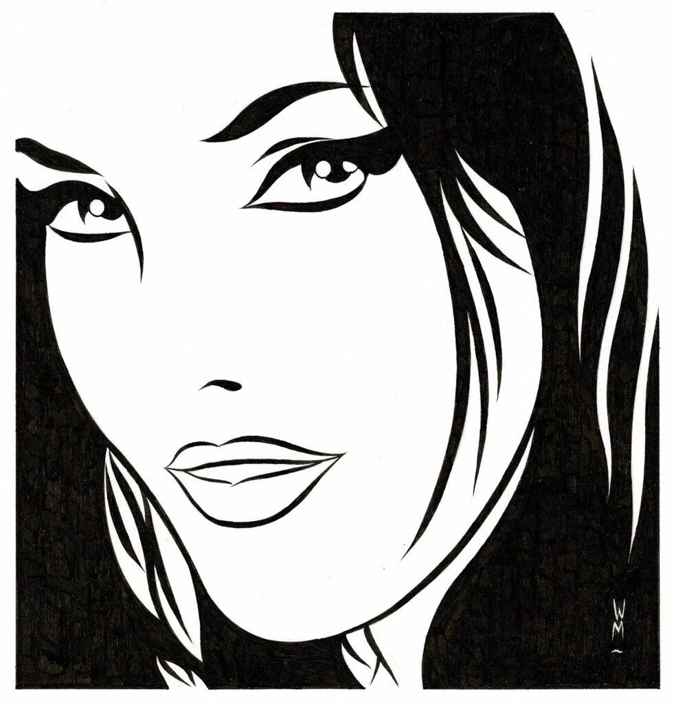 Pin-Up, dessin original à l’encre de chine. Dimensions : 29,5 cm x 21 cm.