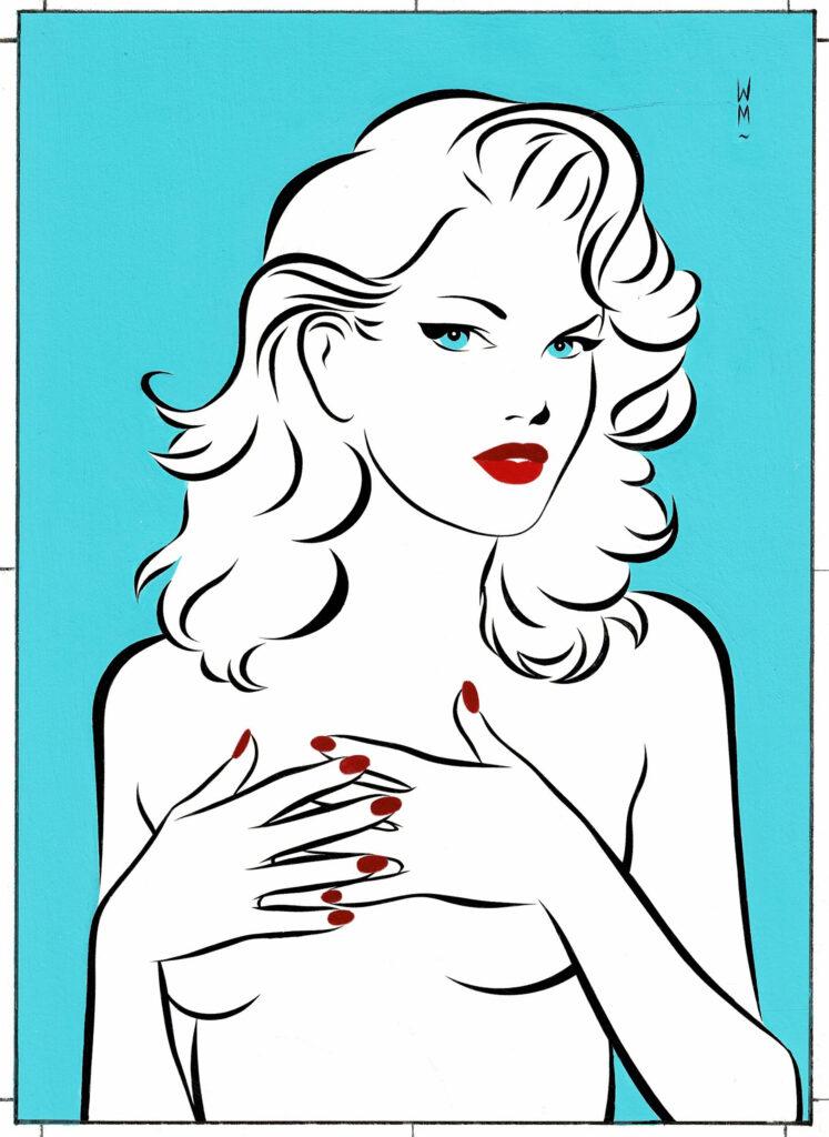 Pin-Up, dessin original à l’encre de chine et à l’aquarelle. Dimensions : 23,5 cm x 18 cm.
