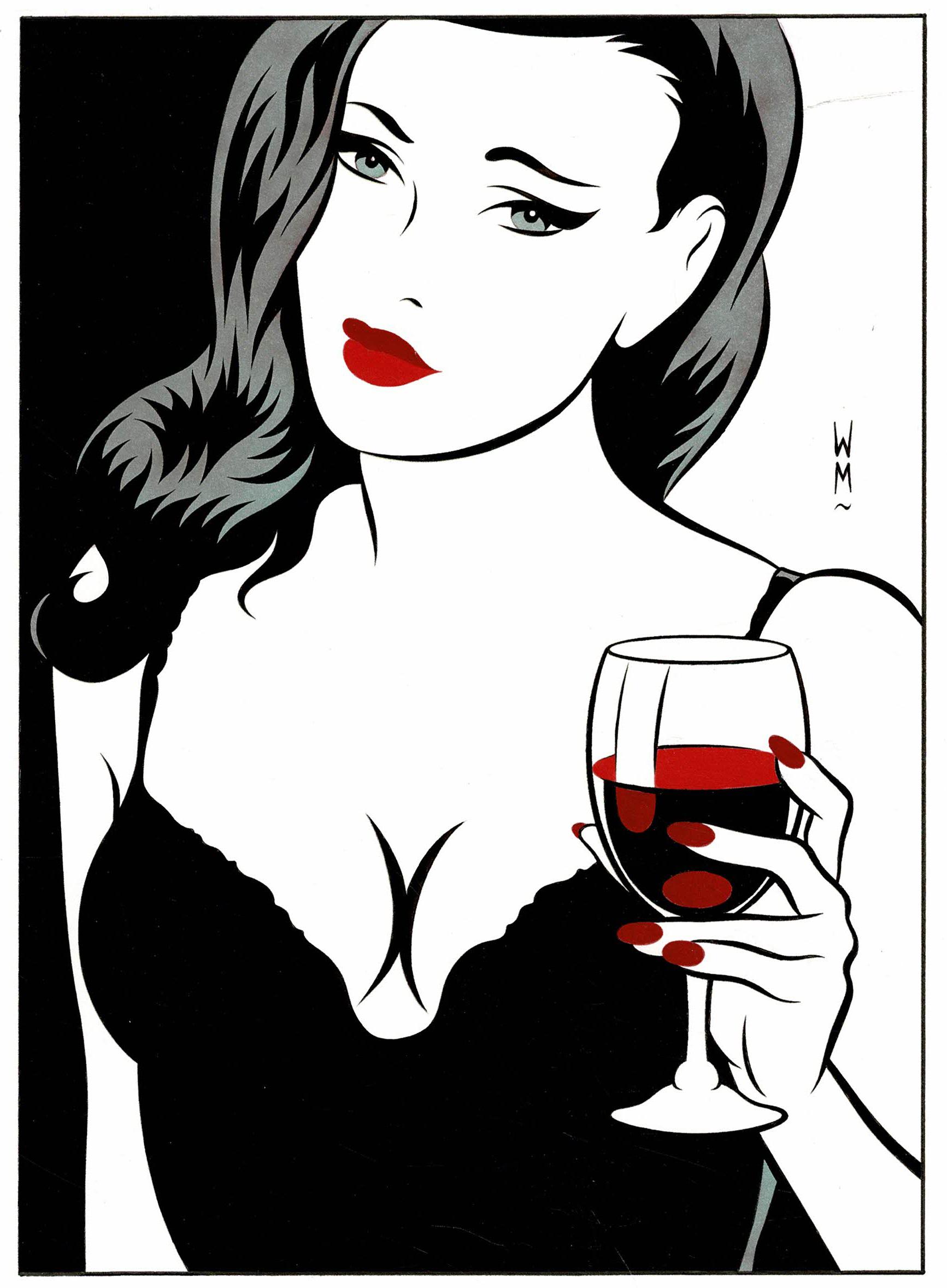 Pin-Up, dessin original à l’encre de chine et à l’aquarelle. Dimensions : 23,5 cm x 18 cm.