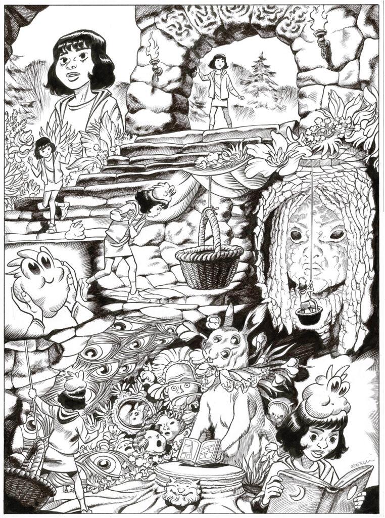 Alice au pays des merveilles, dessin original grand format à l’encre de chine. Dimensions : 50 cm x 37 cm.