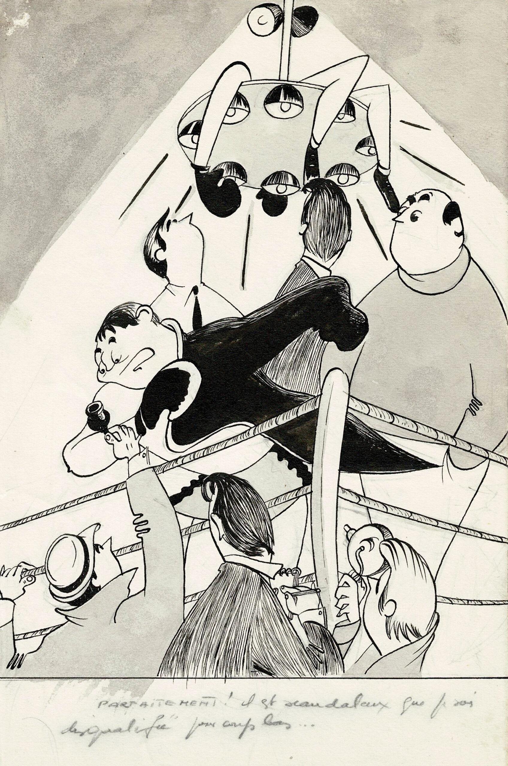 Parfaitement ! Dessin original à l’encre de chine et au lavis. Dimensions : 25 cm x 16 cm.