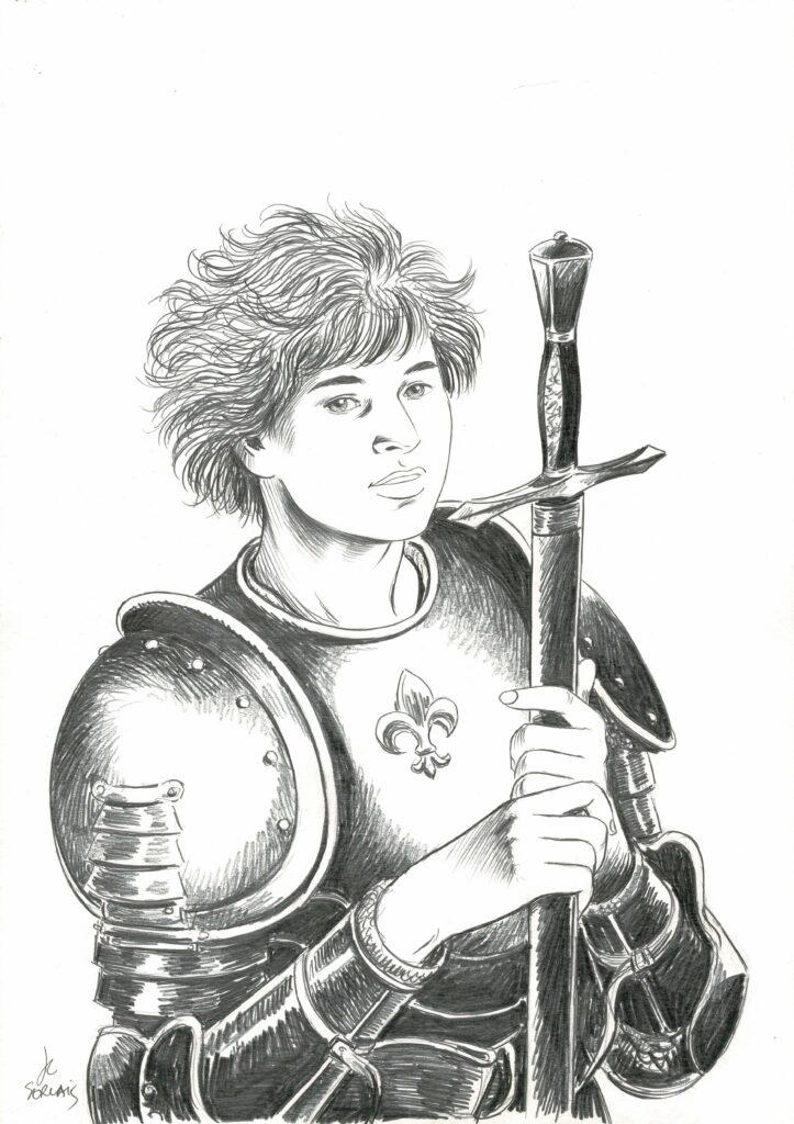 Les Chemins de Compostelle, Jeanne D’Arc, dessin original à la mine de plomb réalisé pour une ex-libris. Dimensions : 42 cm x 29,5 cm.