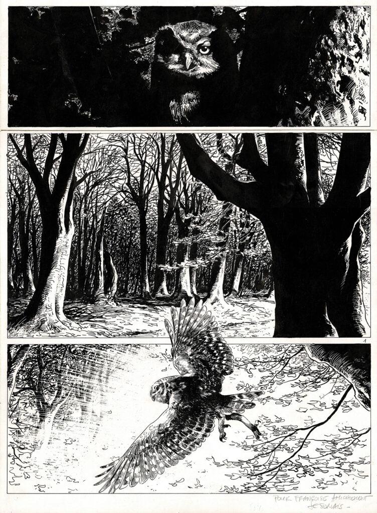 Lova, Tome 1, planche originale à l’encre de chine pour cet album paru en 1992 chez Dupuis. Dimensions : 51 cm x 36,5 cm.