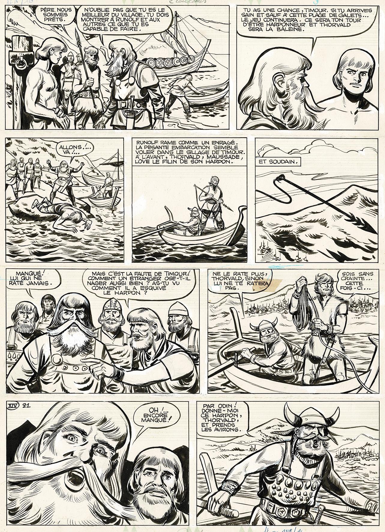 Les Timour, Le drakkar rouge, planche originale à l’encre de chine. Dimensions : 53 cm x 38 cm.