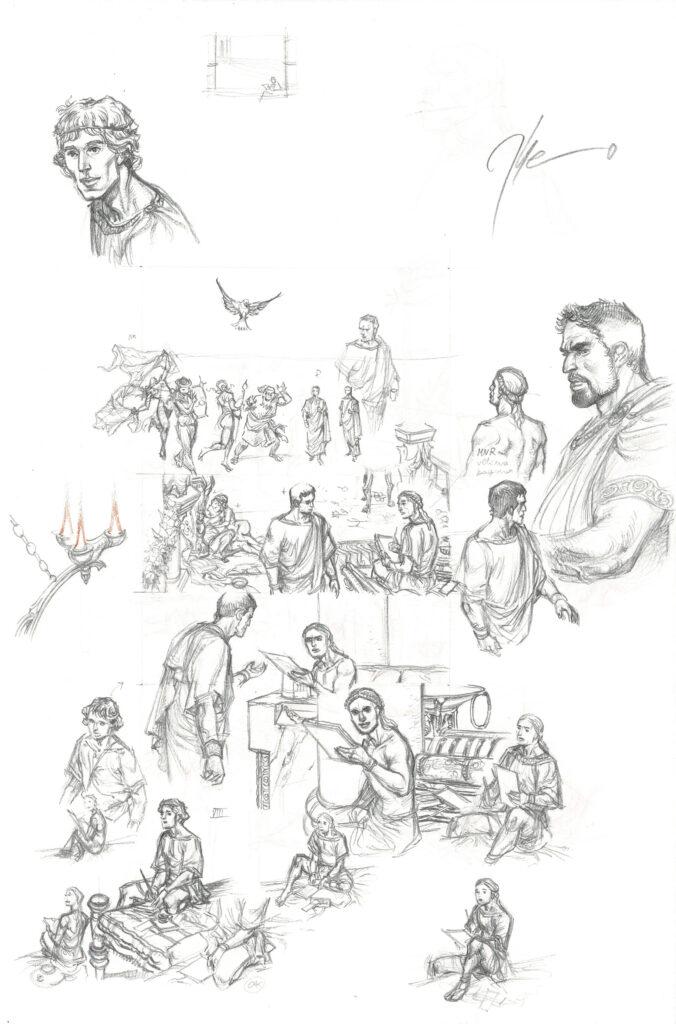 Murena, Mort d’un sage, planche originale à la mine de plomb parue dans le tirage de luxe. Dimensions : 29,5 cm x 21 cm.