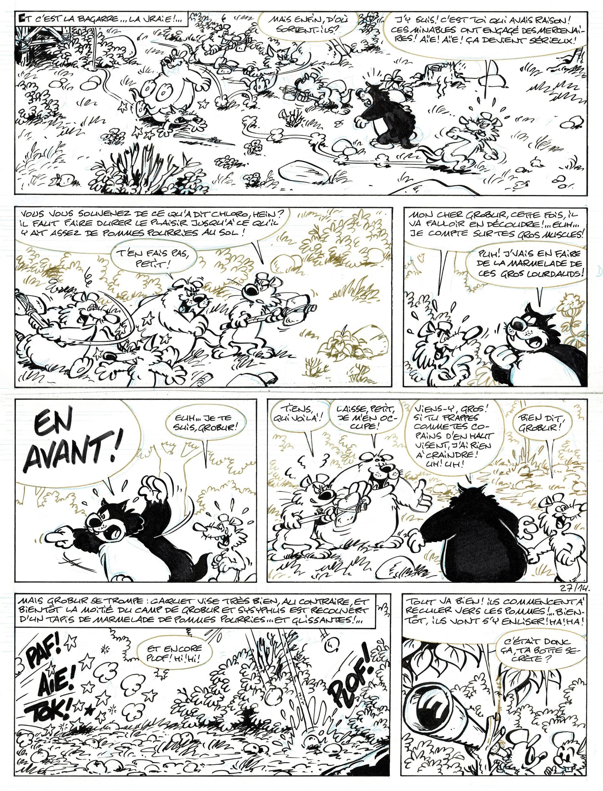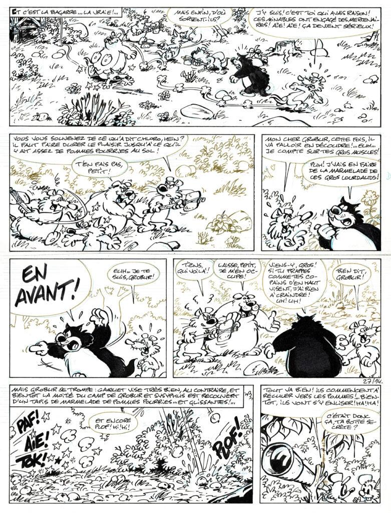 Chlorophylle, Les trois mercenaires, planche originale à l’encre de chine. Dimensions : 47,5 cm x 34 cm.