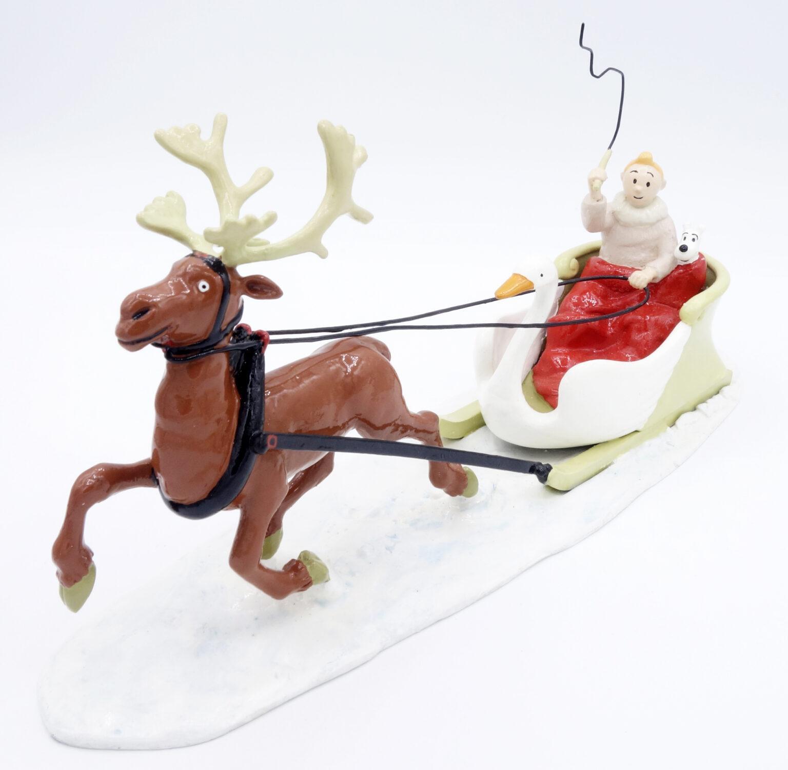MOULINSART PLOMB : Tintin, le traineau tiré par un renne (46946), 2002, 1000 ex., 22 cm, BC.